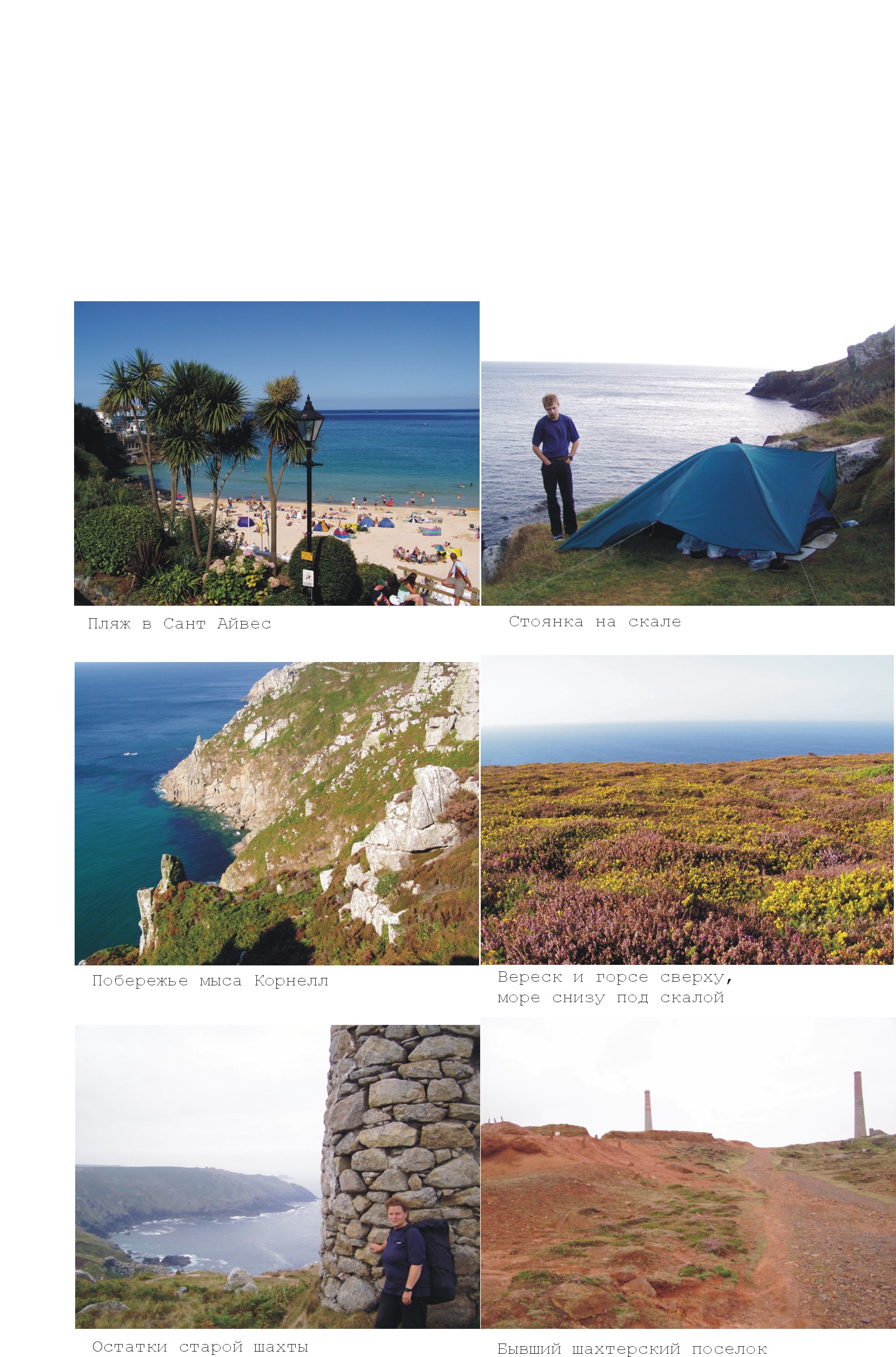 К вечеру мы пришли на территорию интенсивных в прошлом горных работ. Местность была как из фильма ужасов, романтически мрачная, вся в развалинах каменных домов и шахтовых построек, от которых остаются кусок стены и труба. Стало темнеть, пришла пора ставить палатку, поэтому я обрадовалась ровным площадкам среди развалин, но ребенок заявил, что ему в них не по себе. В результате мы отошли от берега и встали в более нейтральном месте, на отвалах карьера. Мимо иногда ходили люди по тропе, ведущую к остаткам жилой деревни, в общем-то, не самое уютное место. Там тоже колышки не втыкались в землю, и пришлось придавливать оттяжки камнями. Я еще чистила ножом площадку от ползучей ежевики. Мы залезли в небольшую котловину, которая немного укрывала от ветра, а с наружи ветер был сильнейший, унес бы нас в море вместе с палаткой. В сумерках мрачно проглядывали силуэты соседних развалин, а ночью действовал на нервы вертящийся луч маяка.